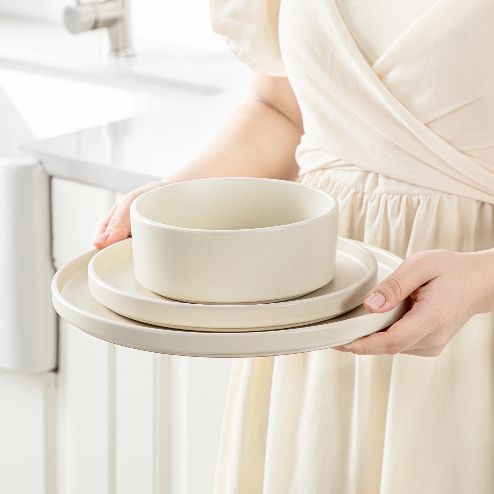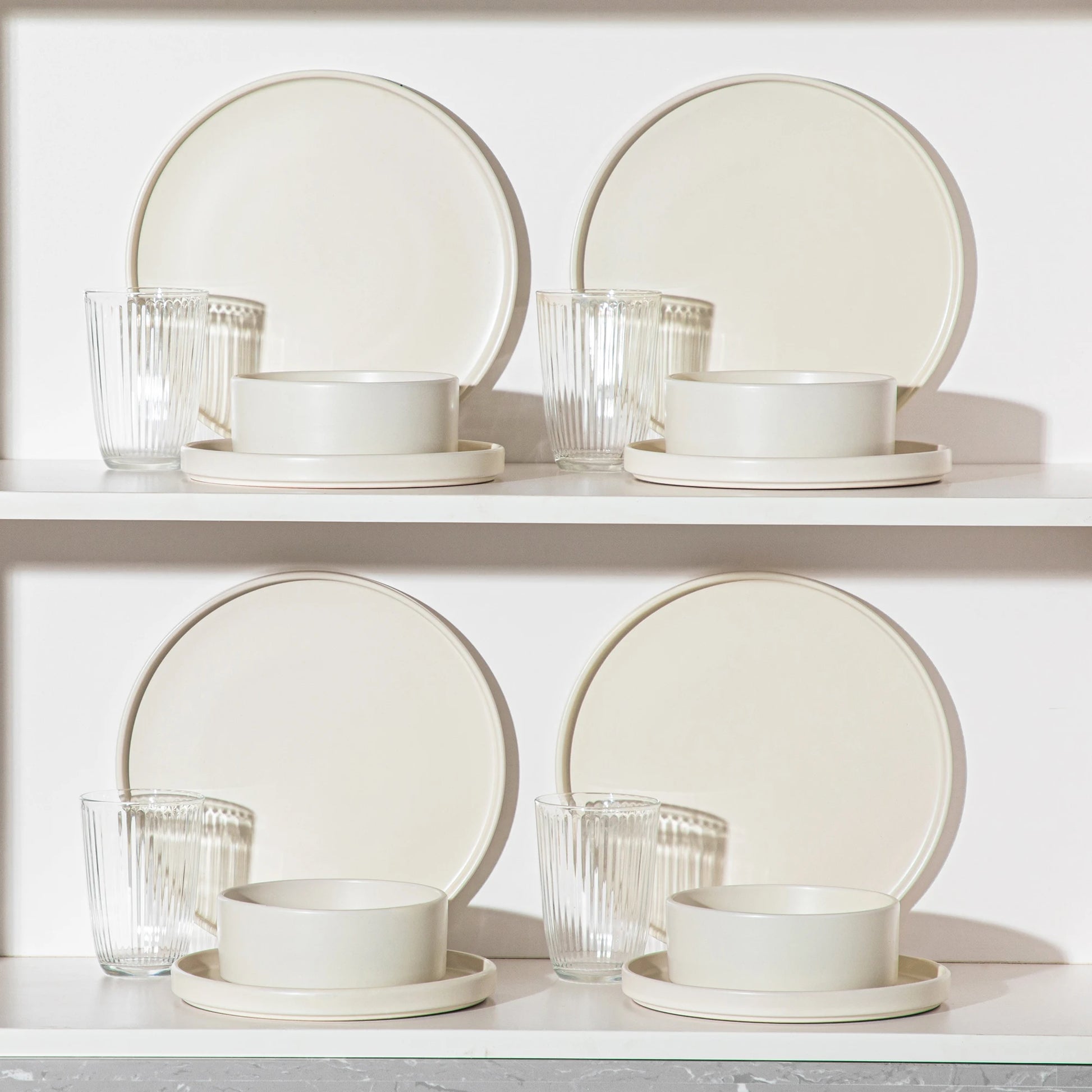 Elegant and practical, this cream white stoneware tableware set is designed to suit any dining occasion—whether it's a casual family meal or a formal dinner. Available in sets for 4, 8, or 12 people, each includes a matching collection of: