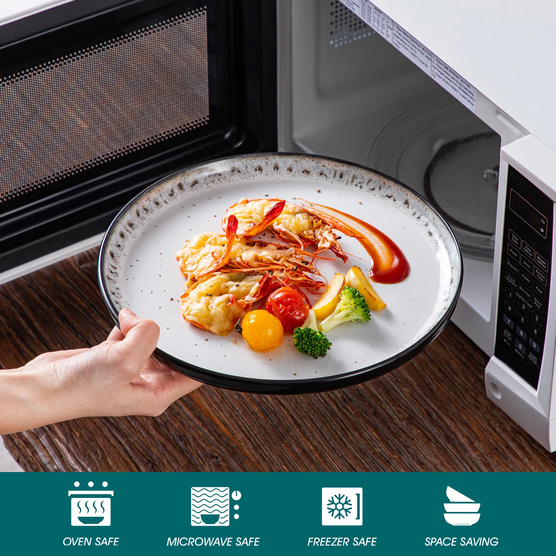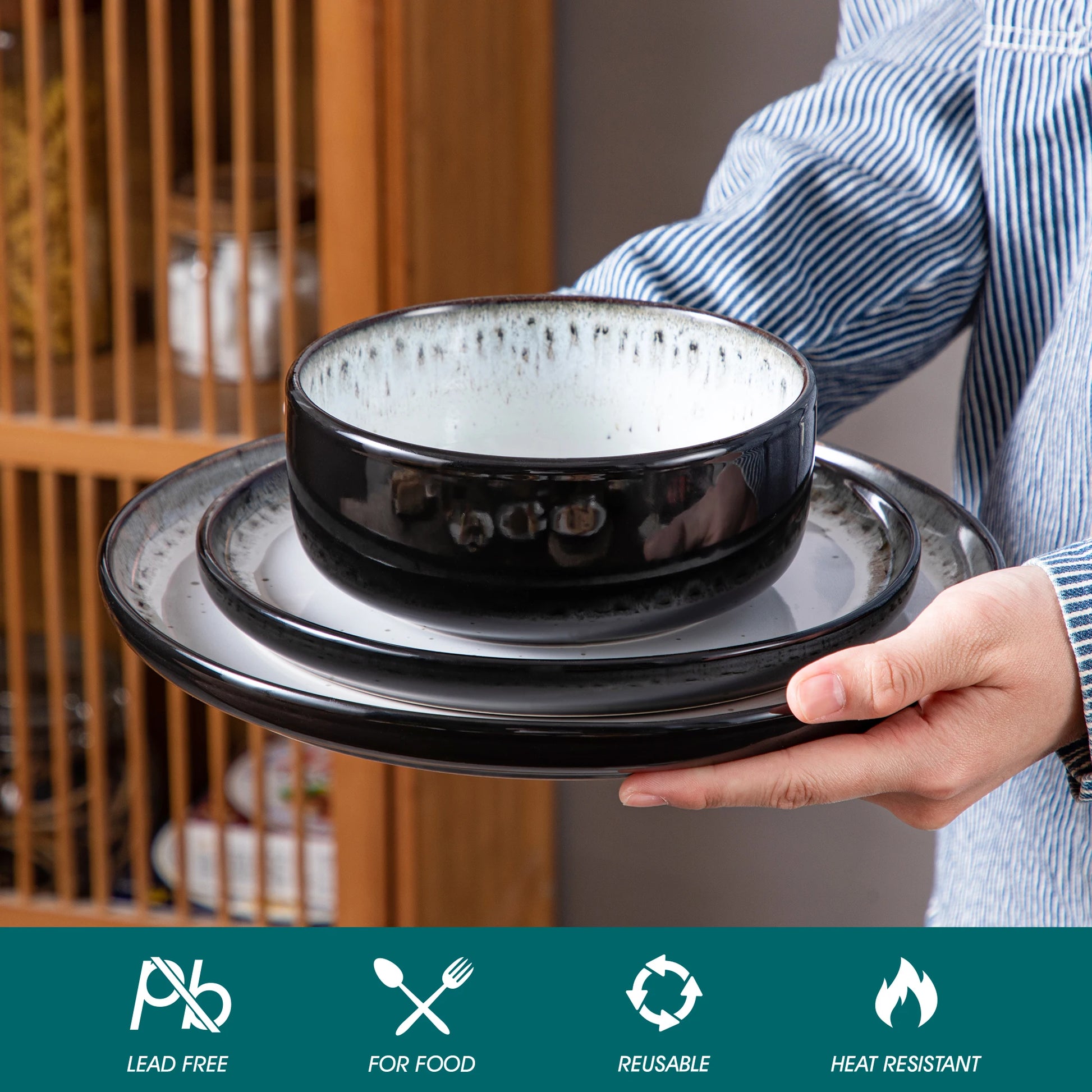 18/36-Piece Black & White Mediterranean Ceramic Dinnerware Set – Includes Dinner Plates, Dessert Plates, Bowls & Soup Plates