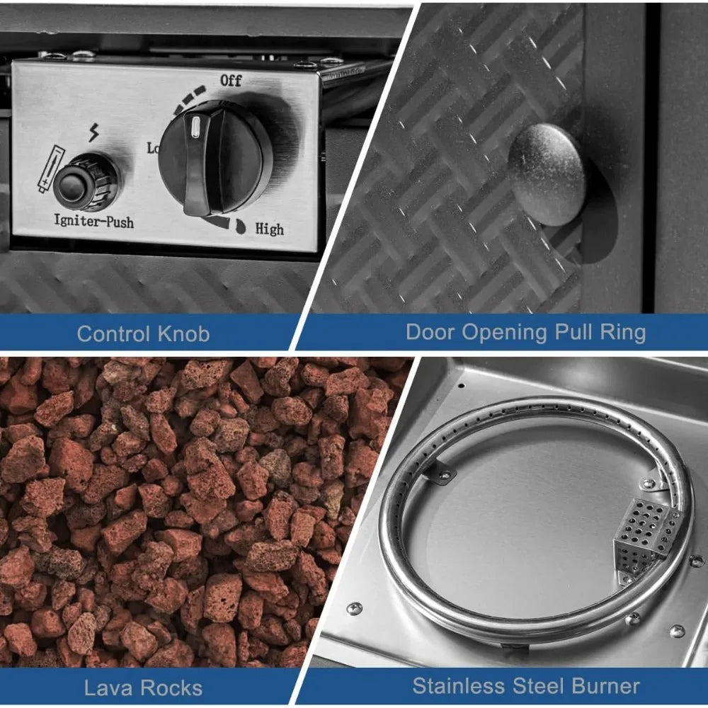 Enjoy a 50,000 BTU smokeless flame that ignites quickly and adjusts easily with a user-friendly control knob. The hidden tank storage behind a convenient access door works with any standard 20 lb propane tank (not included), keeping your setup tidy and safe.