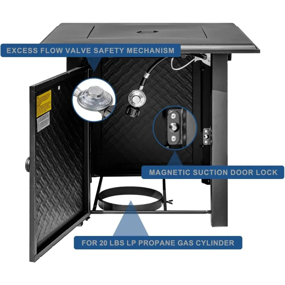 Crafted from high-quality pure iron, this 28-inch propane fire pit table features a cast iron burner and a black high-temperature powder-coated finish for exceptional heat resistance and rust protection. Built to withstand years of outdoor use, it resists cracking, fading, and corrosion—even in harsh weather conditions.