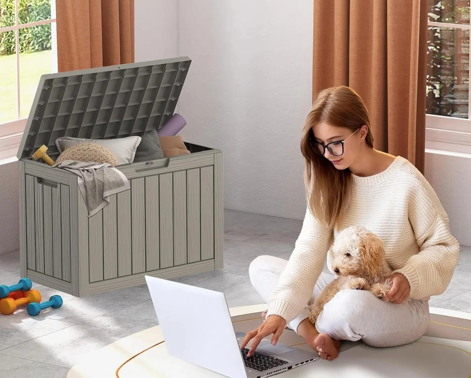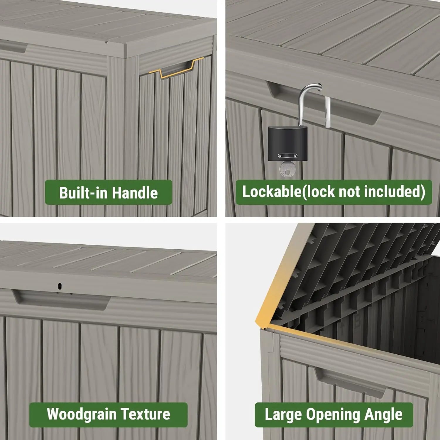 Crafted from upgraded PP resin with a refined woodgrain finish, this deck box is designed to withstand the elements. It features a UV-resistant and waterproof surface, keeping your items dry and protected year-round with minimal maintenance.