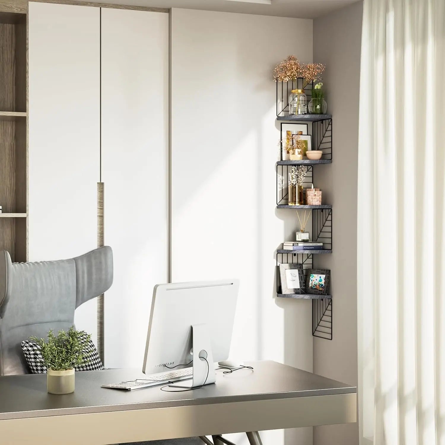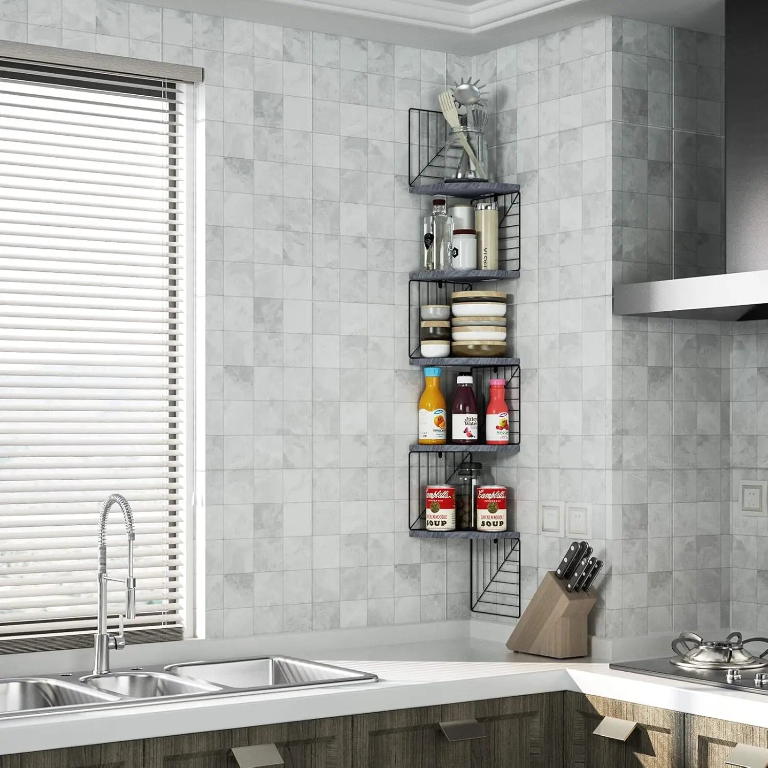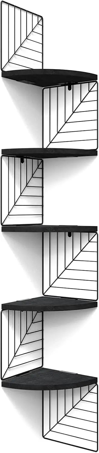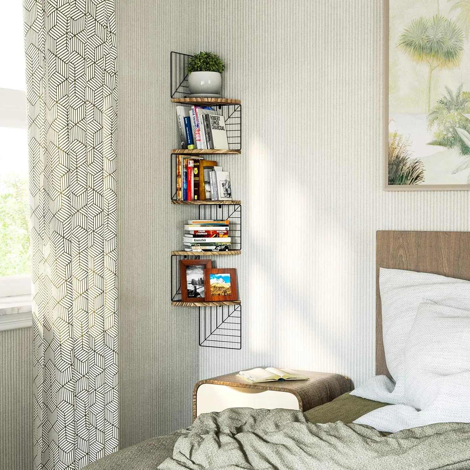 5-Tier Rustic Wood Corner Wall Shelf – Floating Shelves for Bedroom, Bathroom, Kitchen, or Office