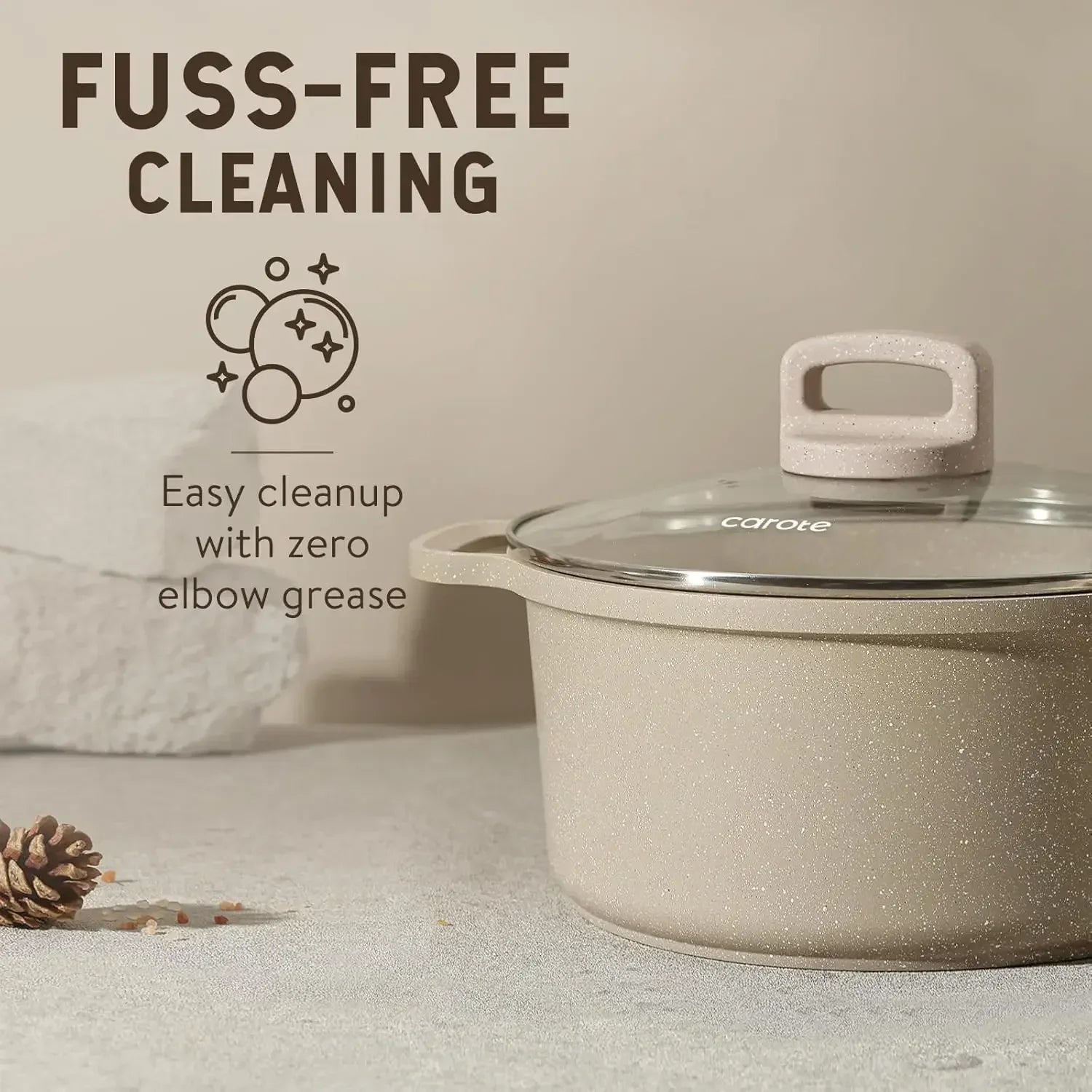 Whether you're cooking for one or feeding a family, this versatile, all-in-one cookware set has you covered—from stovetop to storage. Clean, cook, and organize with ease using the CAROTE Taupe Granite Cookware Set.