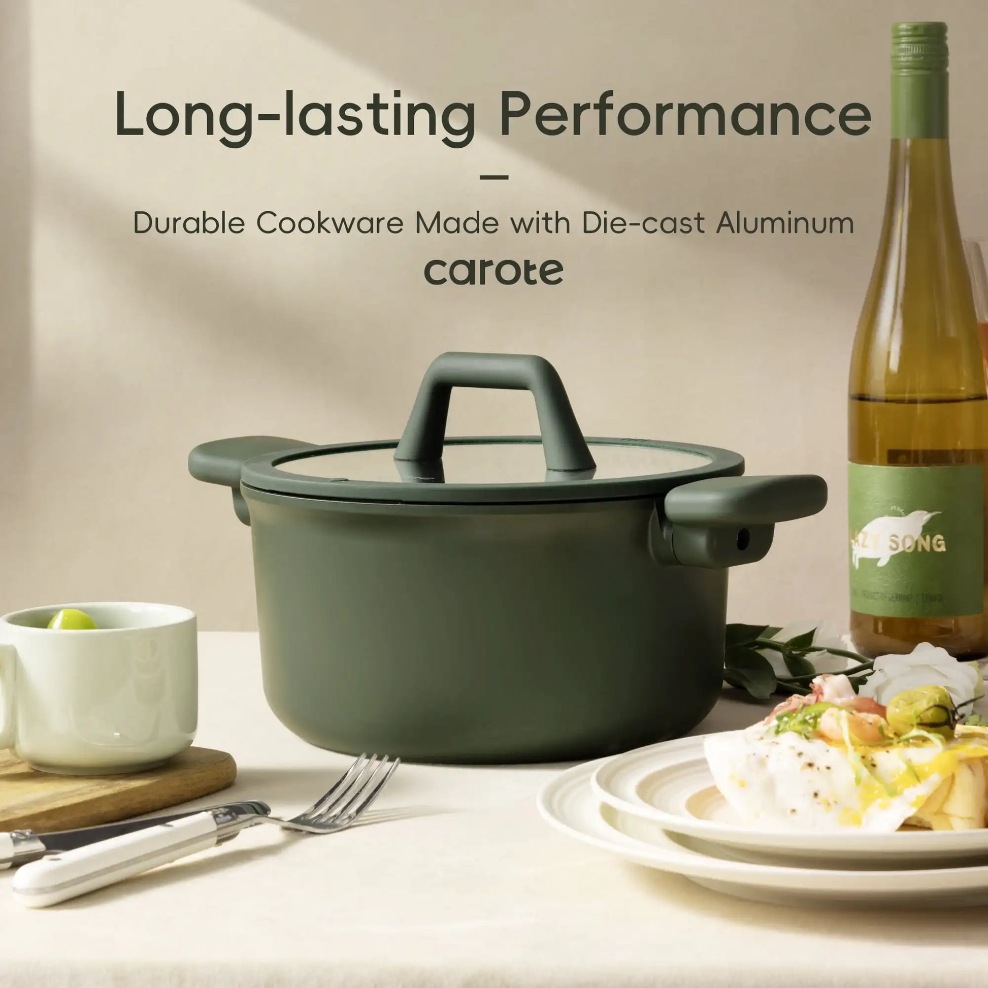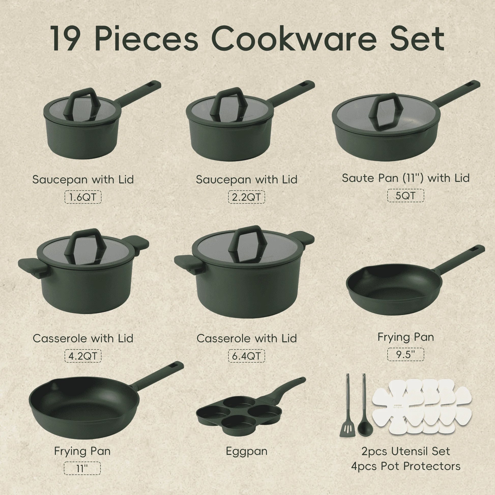 Nonstick Pots and Pans Set – 19-Piece Induction-Compatible Cookware in Dark Green