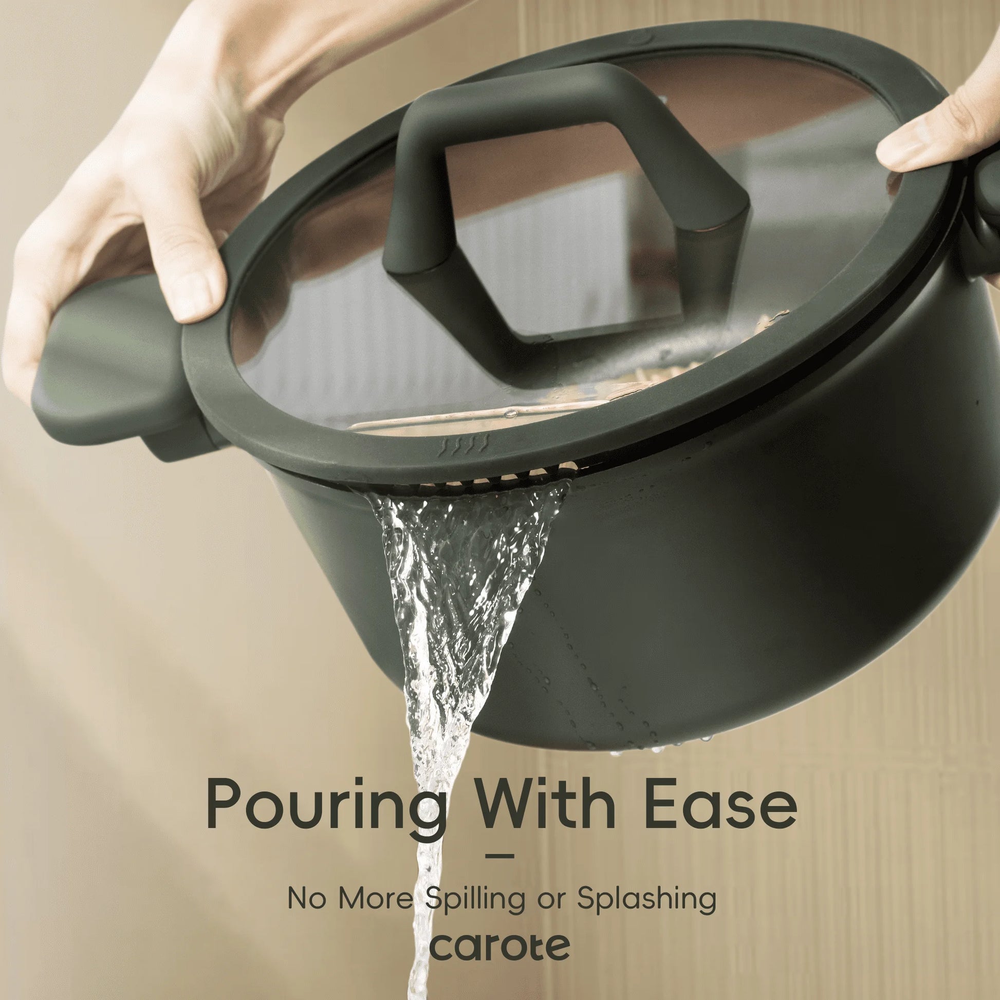 Say goodbye to messy spills. Our cookware set includes specially designed lids with built-in spouts for controlled, precise pouring—perfect for sauces, soups, and stocks.